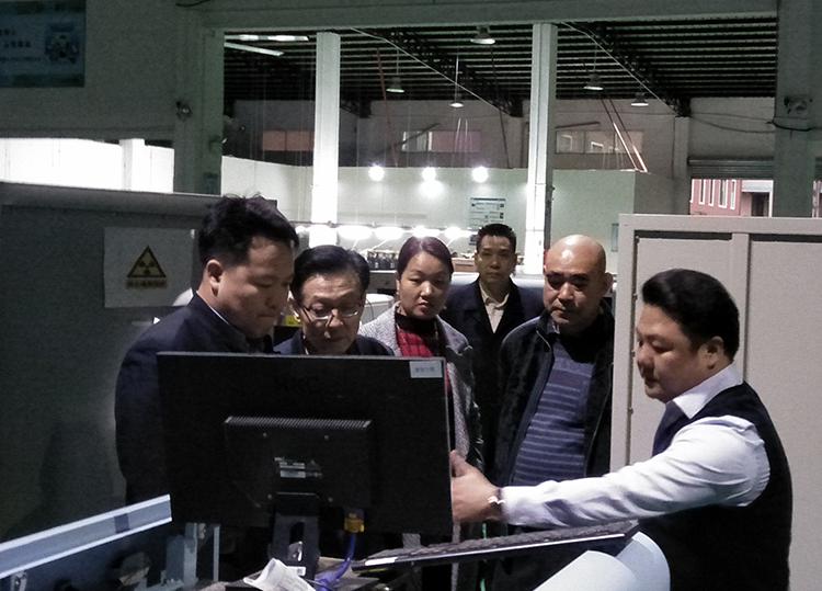 任興磊書記一行先后對集團安檢產(chǎn)品車間、警用產(chǎn)品生產(chǎn)車間、產(chǎn)品測試廳、研發(fā)大樓等各辦公區(qū)進行了參觀,對各類安檢、警用系列產(chǎn)品及安防系統(tǒng)集成類產(chǎn)品進行了詳細的了解。