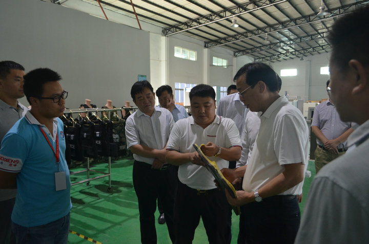 馬正躍書記一行在董事長孟豪、總裁王春麗、執(zhí)行總裁劉學中的陪同下就我司企業(yè)展廳進行了參觀、隨后深入車間查看生產(chǎn)情況,并聽取了孟豪董事長對近年來守門神科技集團的發(fā)展及科研成果情況的匯報。