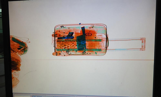 其實安檢機屏幕主要顯示橙色、綠色、藍色、紅色。一般情況下,背包、食品、塑料、礦泉水等有機物是橙色。書本、陶瓷等無機物顯示為綠色,混合物也多呈現(xiàn)綠色,比如不銹鋼制品。金屬刀、模擬槍、匕首和其他金屬物體、電擊槍、刀具則是呈現(xiàn)深淺不一的深藍色或黑色。發(fā)膠、打火機易燃易爆材料,外罐為藍色,而赤色多表明物品是重金屬或者具有很強的抗X射線穿透性。